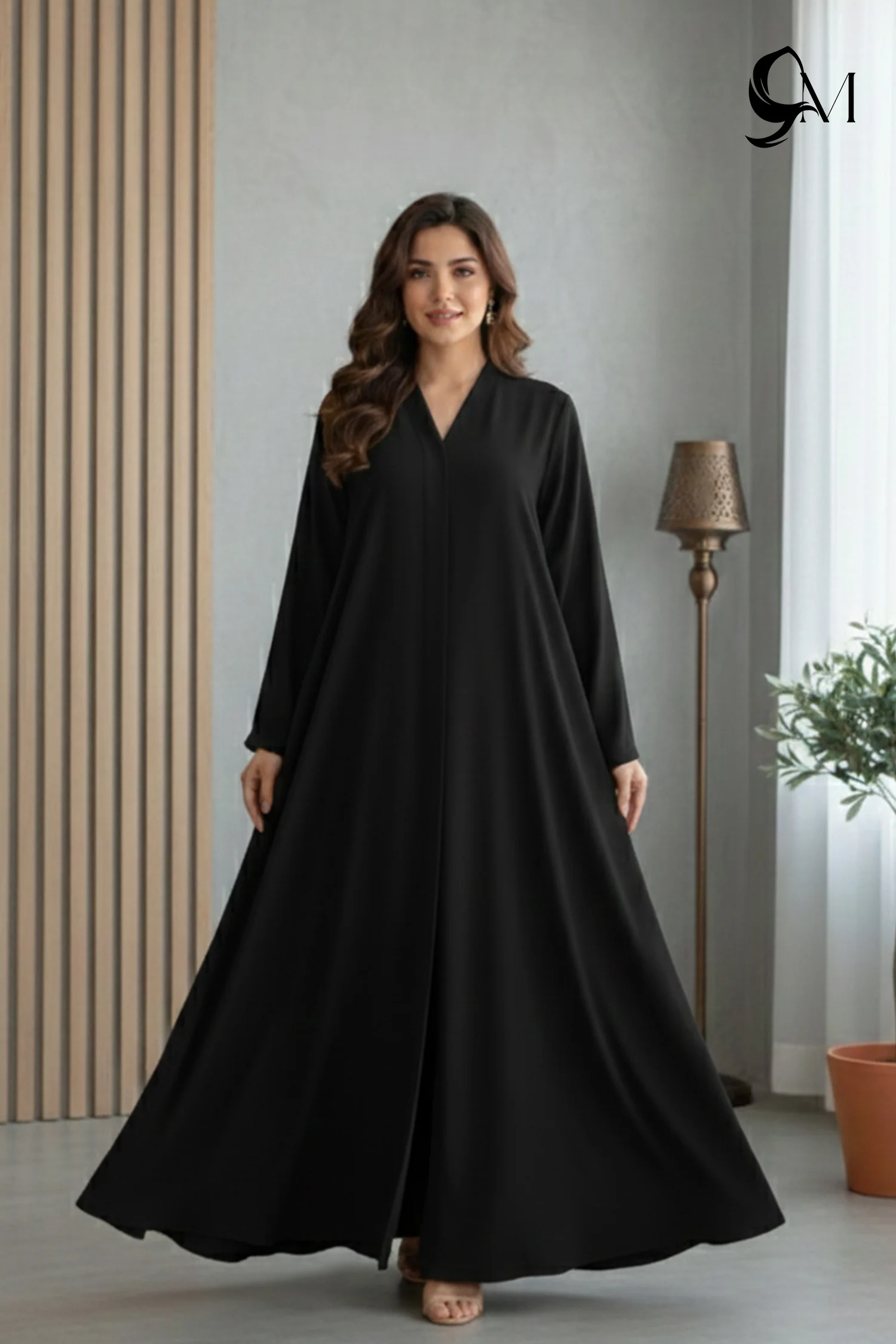 This abaya flows beautifully in Black, with a wide, flared hem that moves gracefully with every step. Its A-line shape gives a statuesque, airy silhouette, while the clean neckline and straight sleeves keep the look polished and balanced. Overall, it feels elegant, confident, and effortlessly flowing, perfect for making a refined impression.- Styling Tips Contrast & Layering: Pair the black abaya with a contrasting hijab in neutral tones, such as beige, white, or soft pastels, or a printed silk hijab for a vibrant touch. Layer it over slim-cut trousers or a long inner dress to create depth and a modern silhouette.Polished Accessories: Define the look with a thin leather or statement belt at the waist and complete the outfit with pointed-toe heels or traditional khussa to balance cultural grace with a professional edge.