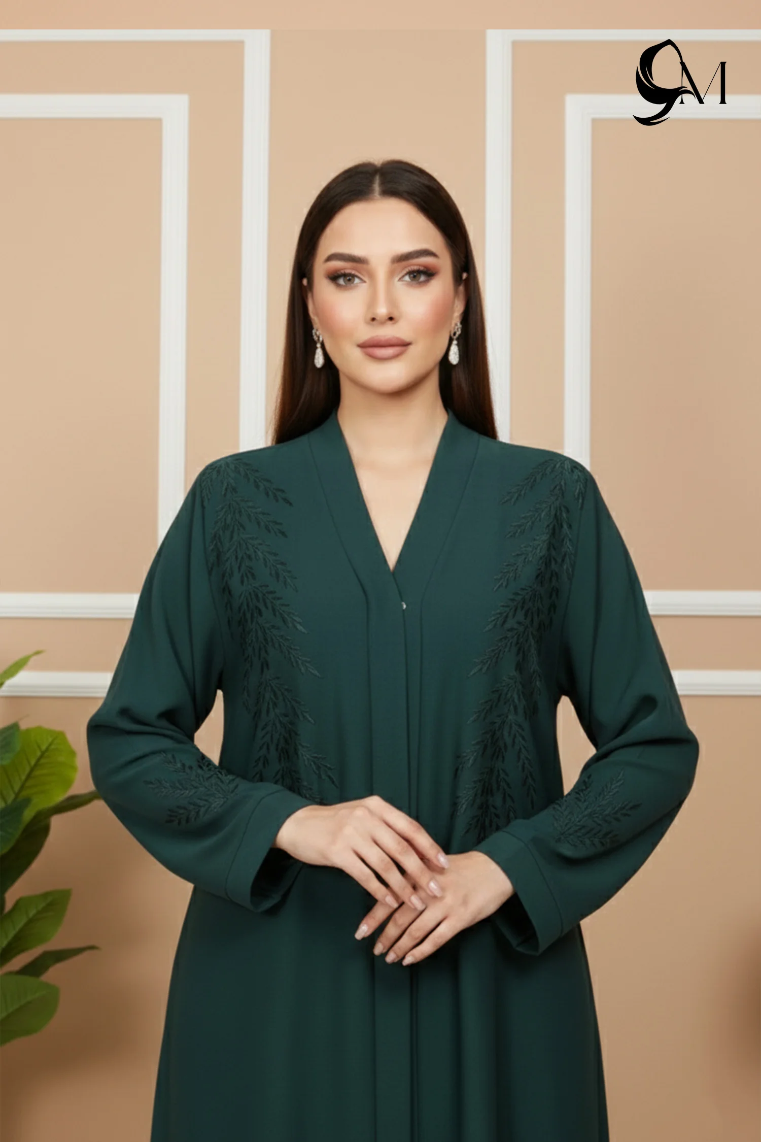 This abaya creates a strong, elegant look in a deep emerald shade that feels rich and confident. It falls straight and smooth, giving a tall, polished appearance. Subtle detailing blends softly into the fabric, adding depth without standing out too much. Overall, it looks refined, graceful, and quietly powerful—perfect for formal settings and evening occasions.- Styling Tips Enhance the Richness with Metallic Accents: To elevate the deep jewel tone for a formal presentation, pair the abaya with gold jewelry, such as dangling earrings or detailed bracelets, which harmoniously enhance the warmth of the emerald green. Maintain Visual Balance with Neutral Hijabs: Use a beige, cream, or white hijab to provide a fresh, sophisticated contrast that allows the radiant dark green to remain the dominant style element without visual clashing.