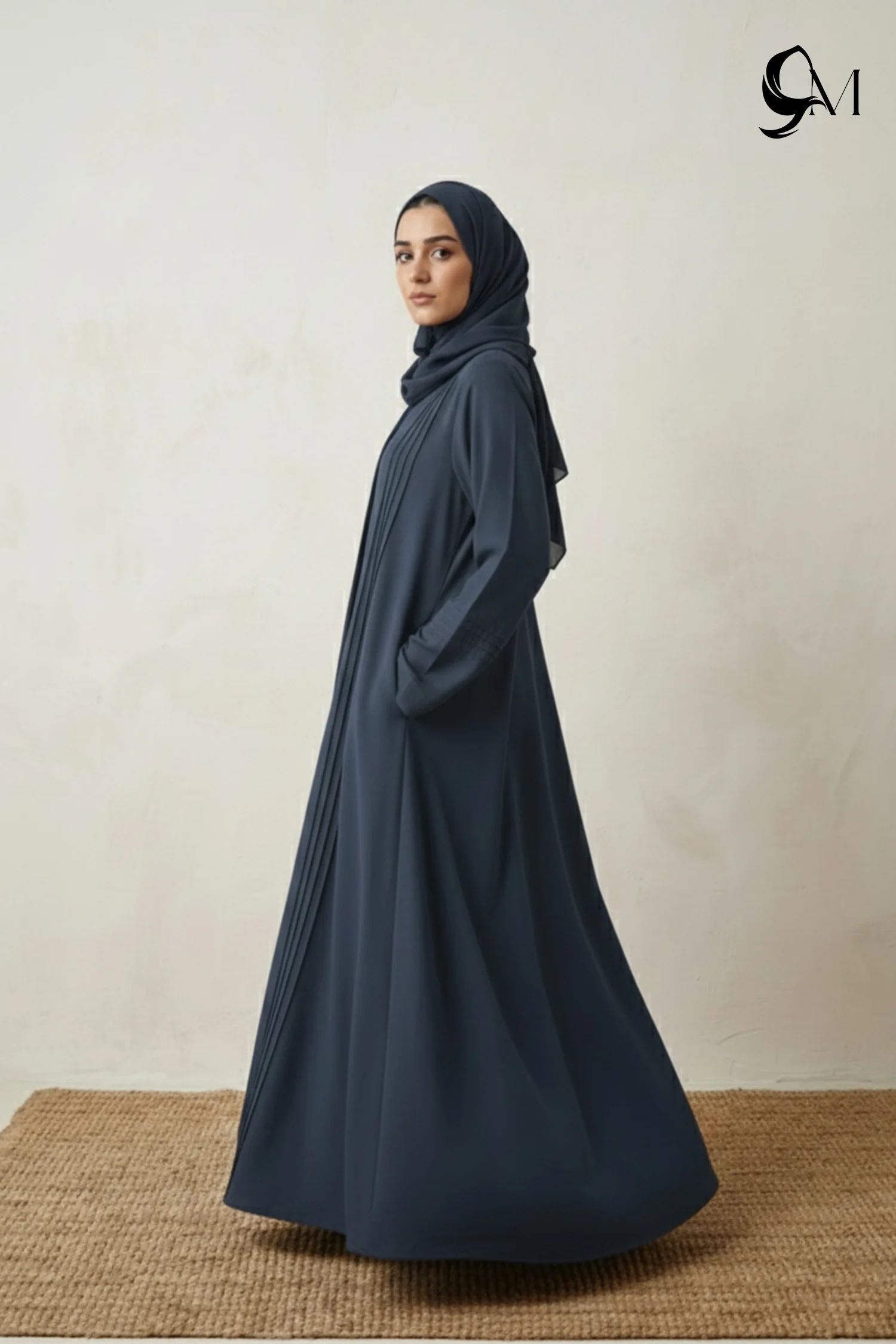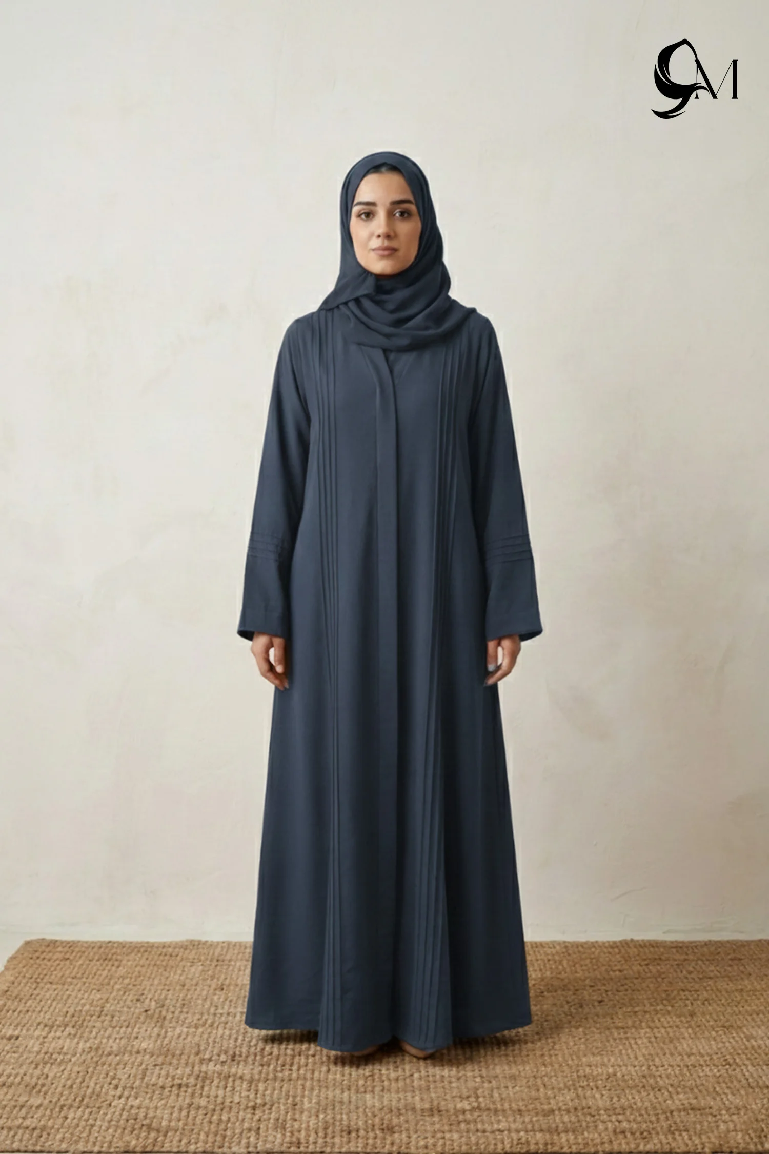 This abaya flows softly and looks graceful when worn, with a Charcoal Silver color that feels calm and elegant. Its clean shape gives a neat, long look, while the simple neckline adds a touch of class. Light and comfortable, it looks modest, effortless, and beautiful, perfect for peaceful days and special journeys. Styling Tips-