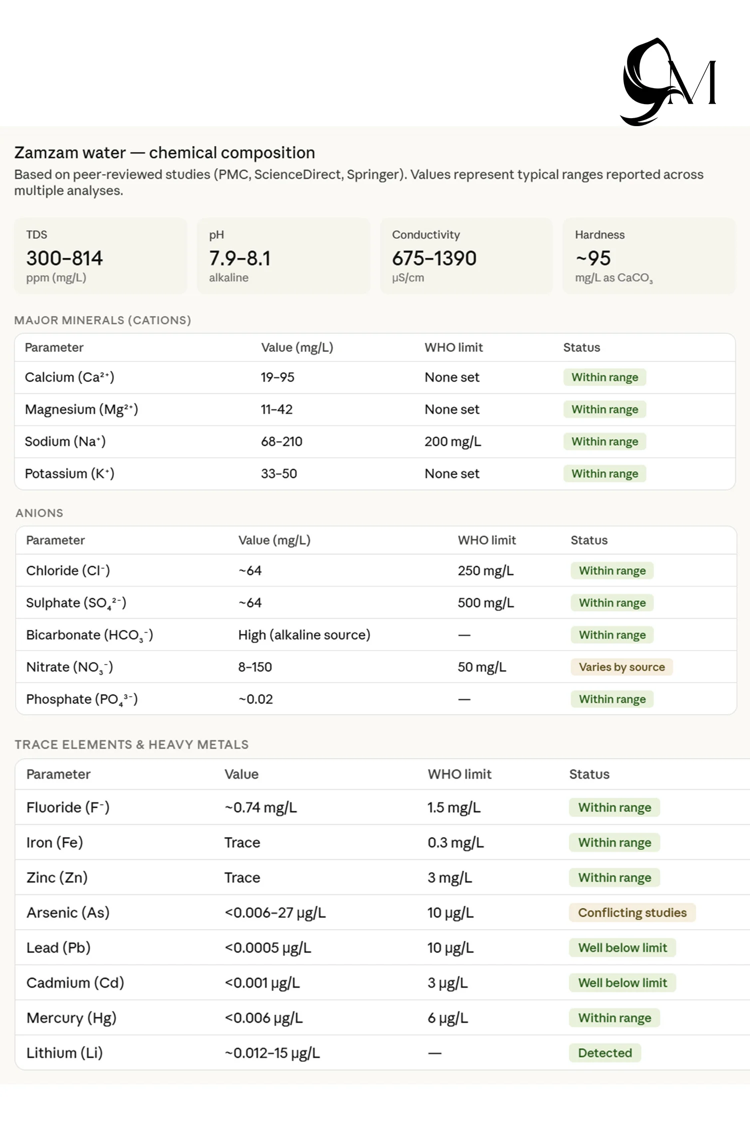 Nitrate also varies widely (8–150 mg/L) depending on the study and source location. The Saudi Geological Survey’s own ongoing testing is the most authoritative, but those detailed figures are not always publicly released.